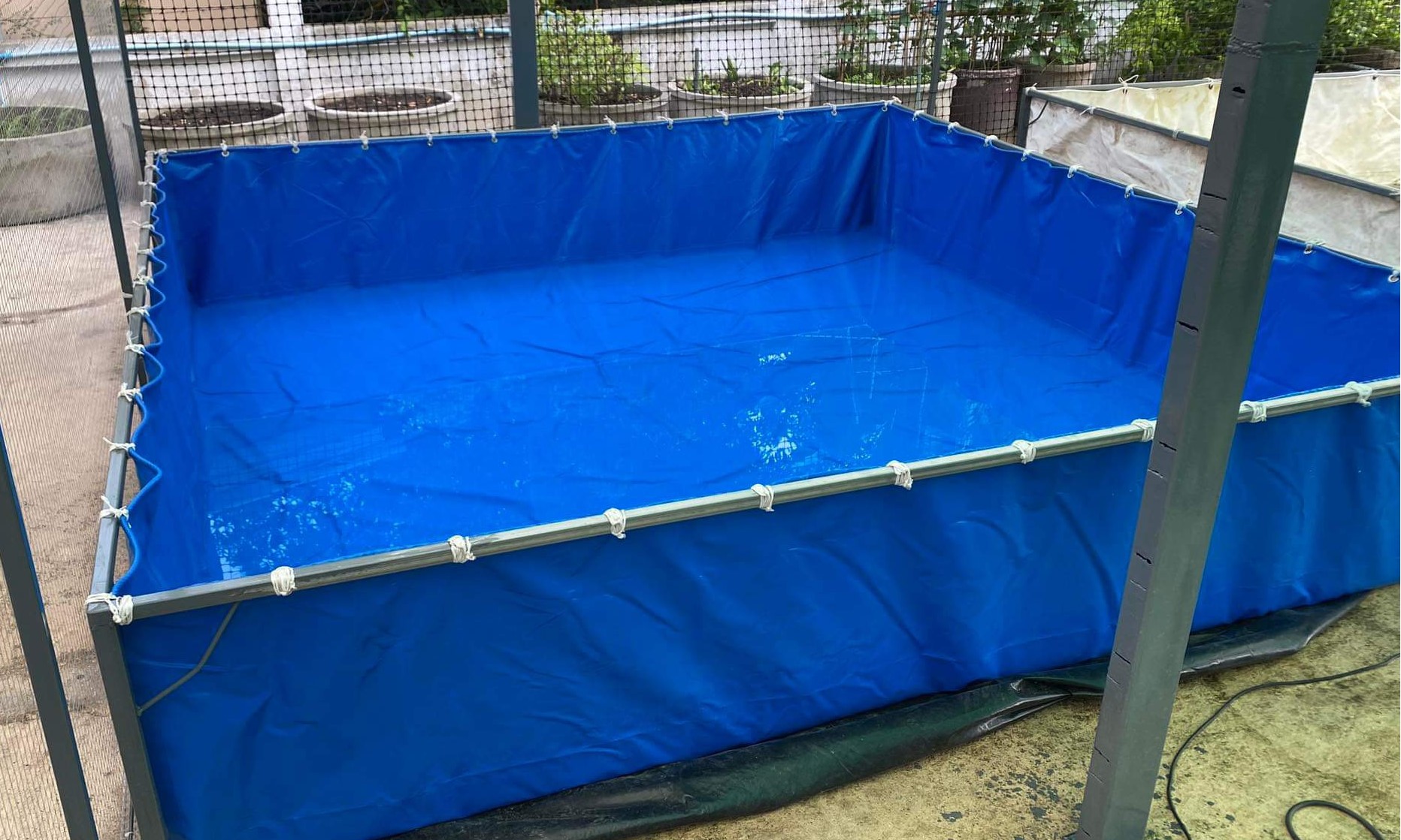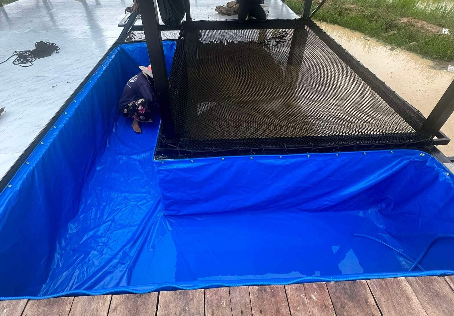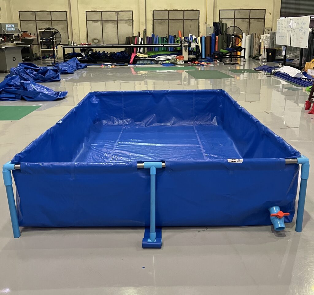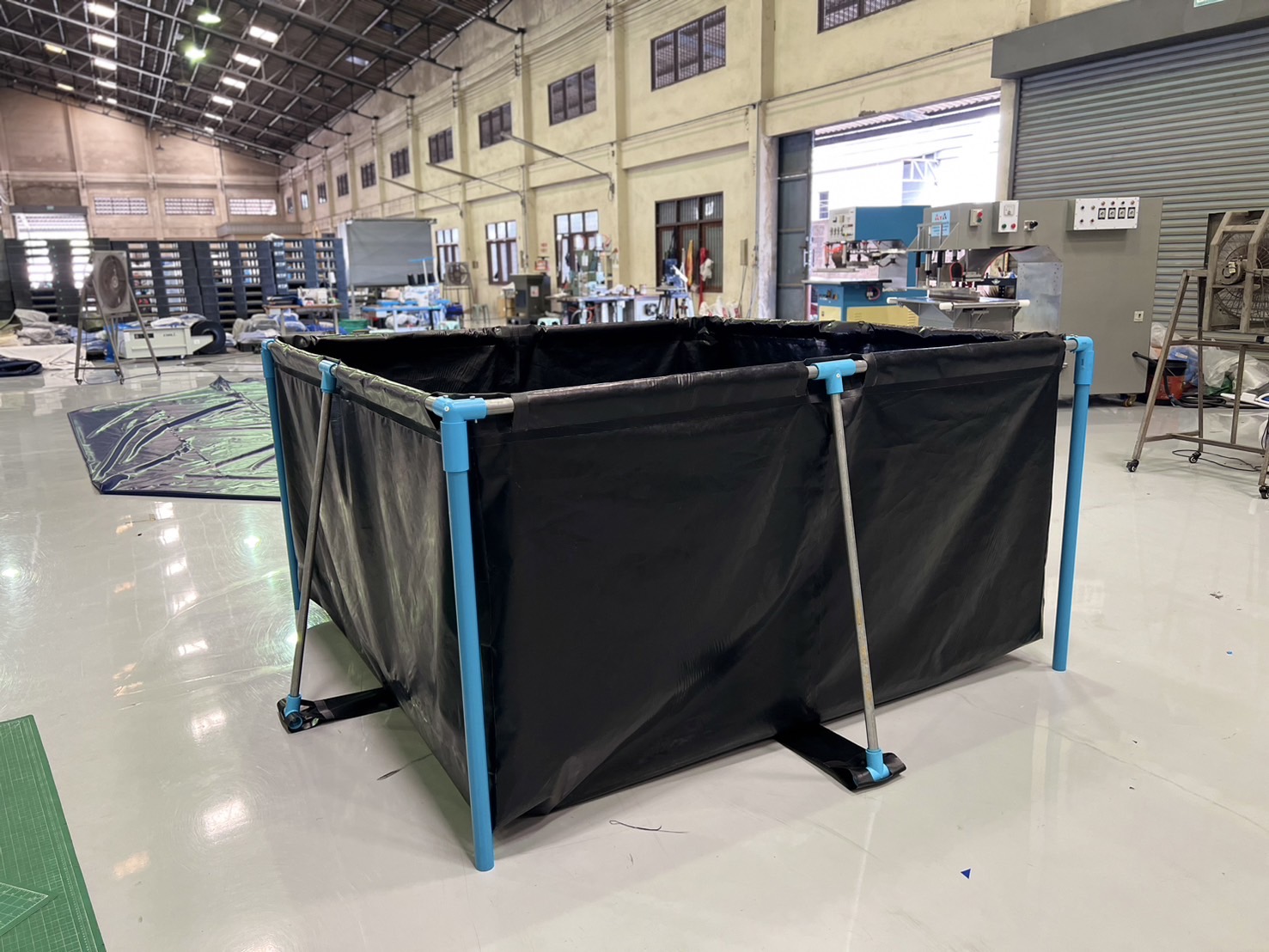 บ่อผ้าใบสำเร็จรูปพร้อมโครงเหล็ก ใช้สำหรับเกษตรกรรม เช่น เลี้ยงปลา เลี้ยงกุ้ง หรือใช้เก็บน้ำ เหมาะสำหรับพื้นที่จำกัด